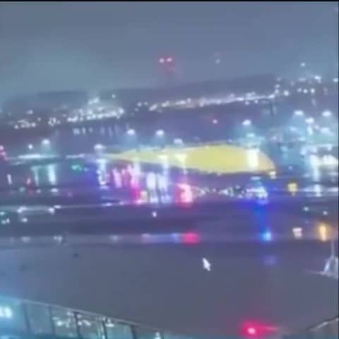 I video che circolano sui social media mostrano veicoli di emergenza che circondano l'aereo, la cui cabina di pilotaggio appare danneggiata.