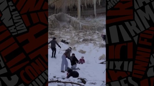 Il video ripreso da Karl-Hendrik Muuga mostra la cascata di ghiaccio alta trenta metri che si stacca dalla parete, e le persone al di sotto che corrono alla rinfusa in cerca di riparo, e provando a evitare i blocchi di ghiaccio che piovono sulle loro teste. La neve sotto ai loro piedi però impedisce di trovare l'equilibrio, e molti cadono, circondati dai massi.
