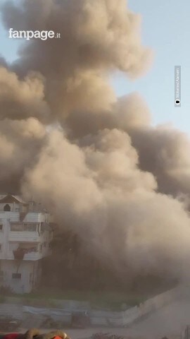 Arriva velocissimo, senza nessun preavviso, uno dei bombardamenti che stanno colpendo in queste ore Gaza City. L’ha ripreso con il suo cellulare Mohammed Alamarin – pizzaiolo e operatore umanitario della Striscia – a pochi metri dal luogo in cui si è rifugiato insieme alla moglie e alle sue figlie, dopo essere stato nuovamente costretto a fuggire. In un altro video girato da Mohammed si vedono file di donne, uomini e bambini fuggire, senza niente in mano, con i soli vestiti addosso, alla ricerca di un luogo sicuro. In un altro filmato, che ha inviato a Fanpage.it, Gaza City è illuminata dall’ultima luce del giorno e in sottofondo si sente il rumore incessante dei colpi dell'artiglieria pesante israeliana.