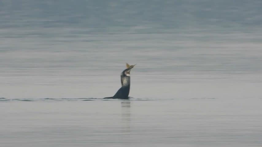 Cormorano ingoia un cefalo dorato enorme al lago di Fogliano: video e racconto della sorprendente predazione