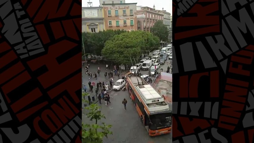 Filobus si sgancia dai cavi e resta bloccato al centro di Napoli, traffico paralizzato e bus deviati
