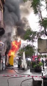 Incendio nella pizzeria “Benvenuti al Sud” a Secondigliano: il rogo ancora in corso, gravi danni al locale