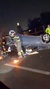 Auto si schianta e si ribalta sul tettuccio. Violento incidente stradale sul viadotto della SS162 Dir, il raccordo autostradale che collega l'autostrada A3 Napoli-Salerno, i paesi vesuviani ed il centro del capoluogo cittadino. A causa del grave incidente, avvenuto ieri sera, il traffico è impazzito, con lunghe code e attese anche di due ore. Il sinistro è avvenuto nella tarda serata di ieri, mercoledì 11 marzo. Ancora da chiarire la dinamica di quanto avvenuto. Sul posto sono arrivati subito i soccorsi, con l'ambulanza del 118, le forze dell'ordine e i vigili del fuoco inviati dal comando di Napoli, guidato dal Comandante Giuseppe Paduano.