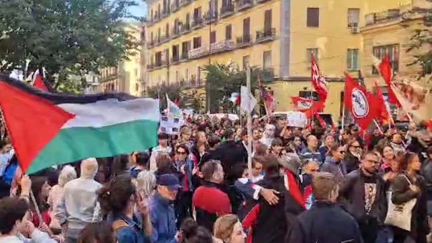 Anche a Napoli in migliaia sono scesi in piazza a sostegno del popolo palestinese: nel giorno dello sciopero generale in tutta Italia, si sono moltiplicate le manifestazioni pro Palestina, che già da ieri sono spuntate autonomamente in tutte le città italiane, soprattutto appresa la notizia dell'abbordaggio, da parte dell'esercito israeliano, delle imbarcazioni della Global Sumud Flotilla nelle acque internazionali che portano a quelle palestinesi.